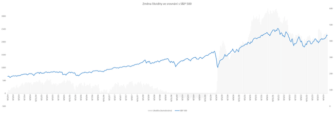 Modificările lichidității (banii în circulație) din economia americană prezic perfect evoluția piețelor bursiere de la începutul pandemiei (a se vedea graficul de mai jos). Creșterea piețelor bursiere după declinul puternic din martie 2020 a fost însoțită de tipărirea a 5 trilioane de dolari de către Rezerva Federală a SUA. Trei trilioane au fost tipărite rapid la începutul anului 2020, iar restul de 2 trilioane de dolari au fost injectate treptat în sistem în următorii 2 ani.