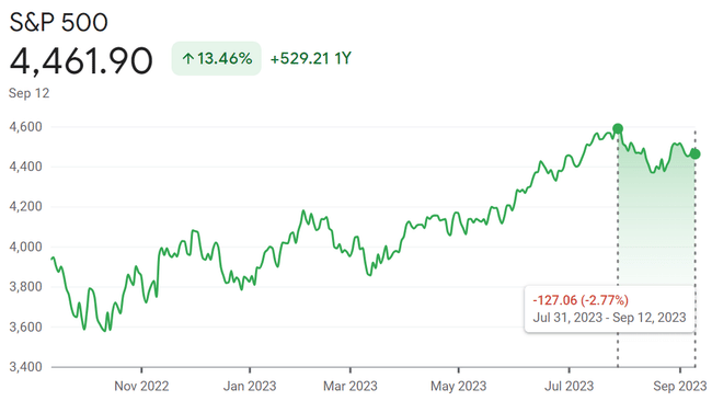 Indicele S&P 500 a înscris mai puțin de trei procente de la vârful atins la 31 iulie și, pe baza citirilor de închidere din zilele de tranzacționare individuale, a scăzut cu mai puțin de 5% cel mult până acum.