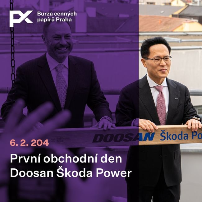 Tranzacționarea emisiunii de acțiuni DOOSAN ŠKODA POWER (ISIN CZ1008000310) a început astăzi pe piața principală a Bursei de Valori din Praga.