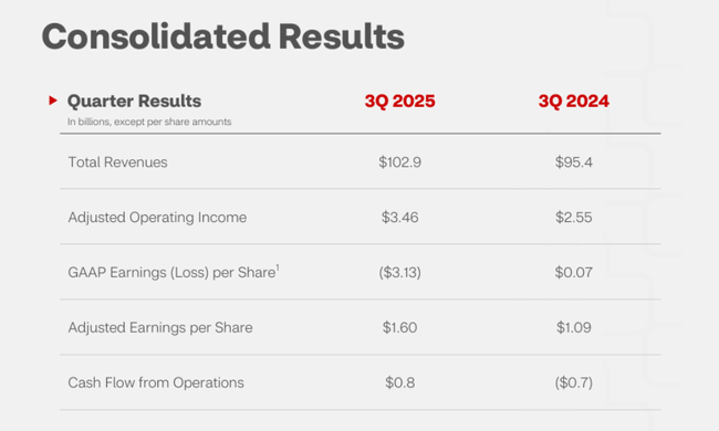 - Compania a înregistrat o pierdere netă de 3,99 miliarde de dolari, sau 3,13 dolari pe acțiune, pentru trimestrul al treilea. Aceasta se compară cu un venit net de 71 de milioane de dolari, sau 7 cenți pe acțiune, pentru aceeași perioadă a anului trecut.