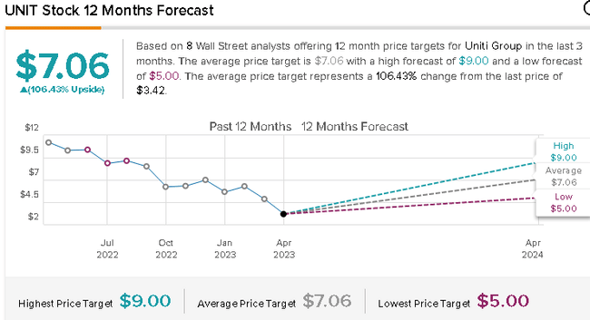 Rezultatele celui de-al patrulea trimestru au inclus venituri consolidate de 283,7 milioane de dolari, în scădere cu 3,2% de la an la an, și 0,44 dolari pe acțiune în AFFO. Uniti Group reprezintă o oportunitate atractivă pentru investitorii care caută expunere la sectorul infrastructurii de comunicații, care ar putea beneficia de cererea în creștere pentru accesul în bandă largă și alte tehnologii. Compania plătește, de asemenea, dividende, cu un randament al dividendelor de 18,3%.